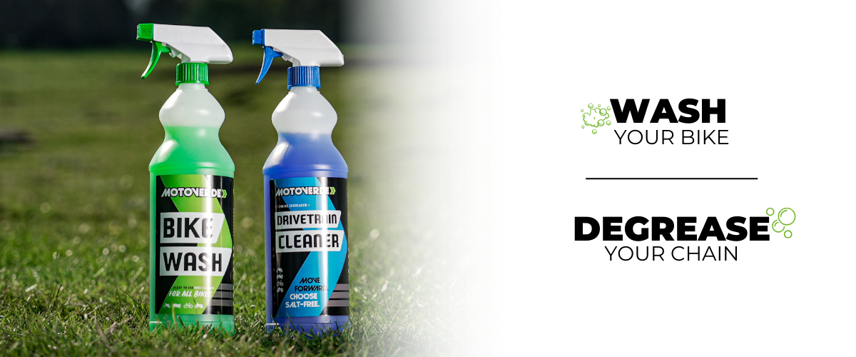 Bike Wash 1L Gotowy do użycia: Środek czyszczący do rowerów, który jest bezpieczny dla wszystkich rowerów i ich części! Wszyscy wiemy, jak wrażliwe mogą być rowery i ich części, dlatego uważamy, że tak ważne jest, aby wybrać odpowiedni środek czyszczący. Nasz gotowy do użycia środek czyszczący do rowerów zawiera specjalnie dobraną mieszankę w pełni biodegradowalnych środków powierzchniowo czynnych, które szybko czyszczą każdą część Twojego roweru. Bike Wash zapewnia silne czyszczenie poprzez usuwanie uporczywego brudu, błota, osadu, piasku i plam gliny przy minimalnym wysiłku. Pozostawia wykończenie bez smug, jednocześnie będąc bezpiecznym dla wszystkich wrażliwych powierzchni Twojego roweru. Pierwotnie opracowany do motocykli motocrossowych, wiemy, jak czyścić brud! Bike Wash można stosować na wszystkich rowerach i częściach roweru, niezależnie od tego, czy są mocno zabrudzone, czy wymagają tylko lekkiego czyszczenia. Wierzymy, że środek czyszczący do rowerów powinien zapewnić Ci spokój ducha, dlatego upewniliśmy się, że nasza formuła nie zawiera kwasów, soli alkalicznych ani żadnych innych agresywnych chemikaliów, które mogą uszkodzić Twój rower, dzięki czemu możesz mieć najlepsze możliwe doświadczenie czyszczenia. Środek czyszczący do układów napędowych 1L: Najłatwiejszy sposób na wyczyszczenie łańcucha i silnika! Dzięki silnemu działaniu czyszczącemu Motoverde Drivetrain Cleaner usuwa olej, smar, wnikliwy brud i zanieczyszczenia z każdego łańcucha, powierzchni lub silnika. Łatwy w użyciu produkt, który nadaje się do stosowania w urządzeniu do czyszczenia łańcucha lub do bezpośredniego spryskiwania powierzchni. Motoverde Drivetrain Cleaner to niezbędny produkt do posiadania w swojej kolekcji środków do czyszczenia rowerów! Ten produkt nie zawiera żadnych agresywnych składników, więc jest bezpieczny dla łańcucha, ogniw i wszelkich otaczających materiałów, takich jak uszczelki gumowe lub tworzywa sztuczne.