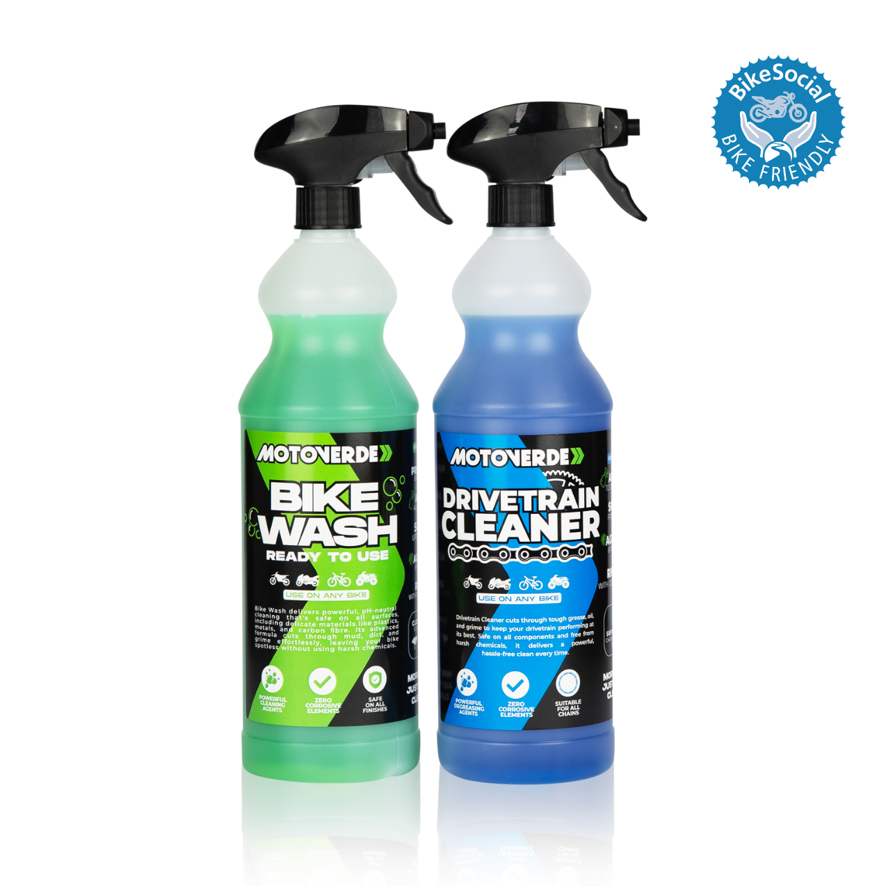 Wash + degrease in one cleaning bundle! The basic must haves for cleaning up after a mucky ride.